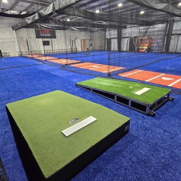Batting cages are $40 per hour, with access to rent (2) baseball and (2) softball pitching machines, so hitters can get high-volume, game-speed reps.